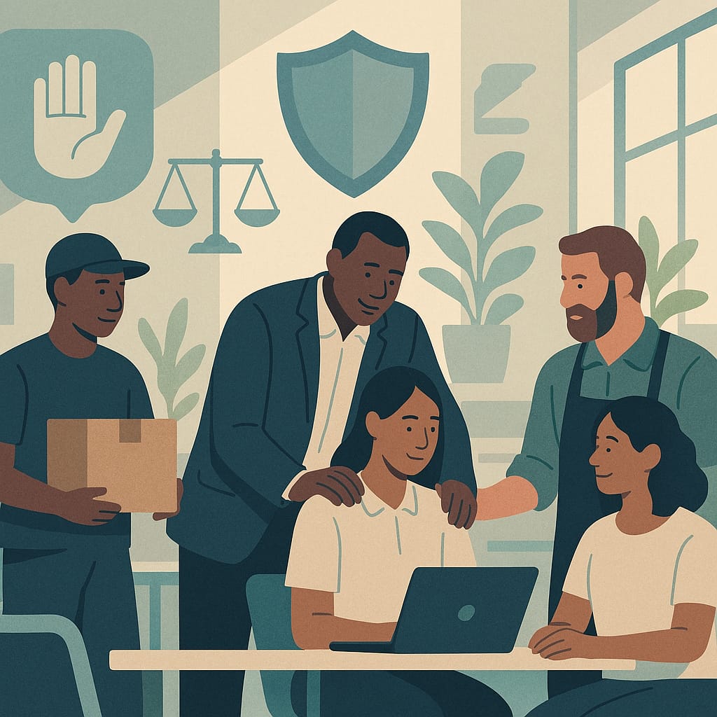 Garantizamos condiciones de trabajo seguras, justas y libres de acoso o coerción.